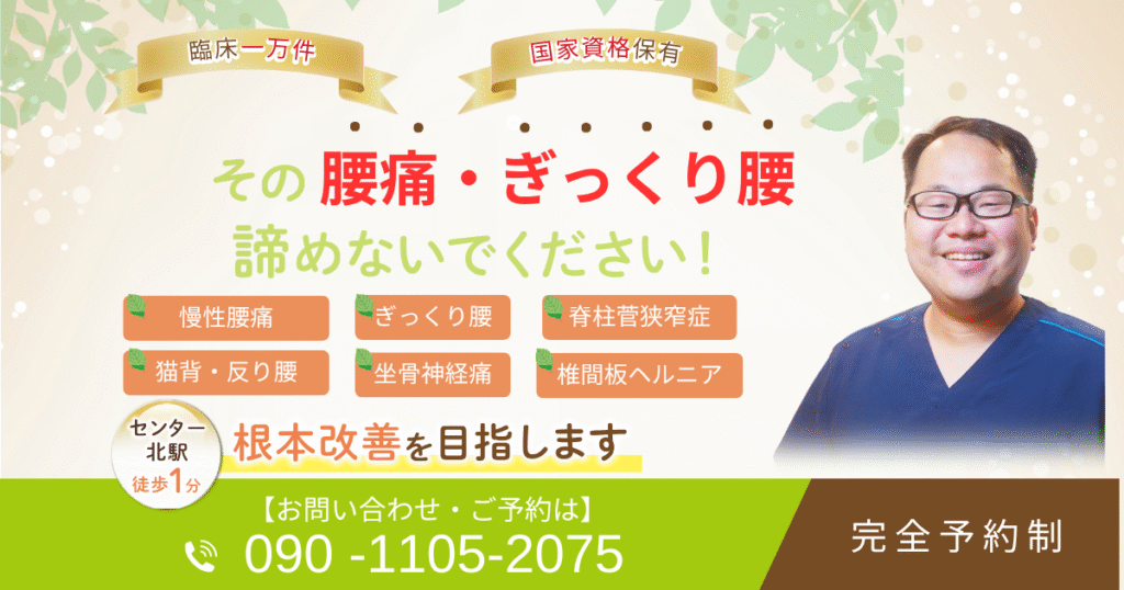 都筑区センター北駅近くで腰痛、ぎっくり腰を改善できる整体をお探しの方へ