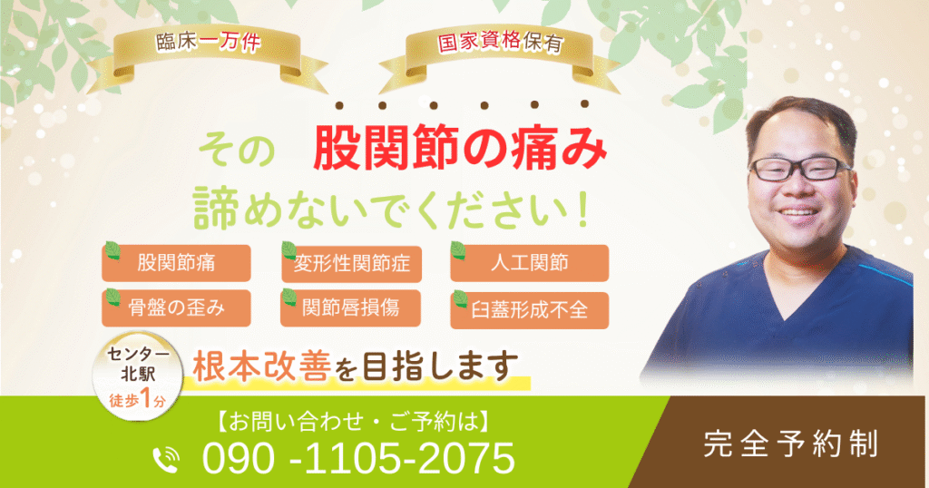 都筑区、センター北駅周辺で股関節の痛みを改善できる整体をお探しの方!